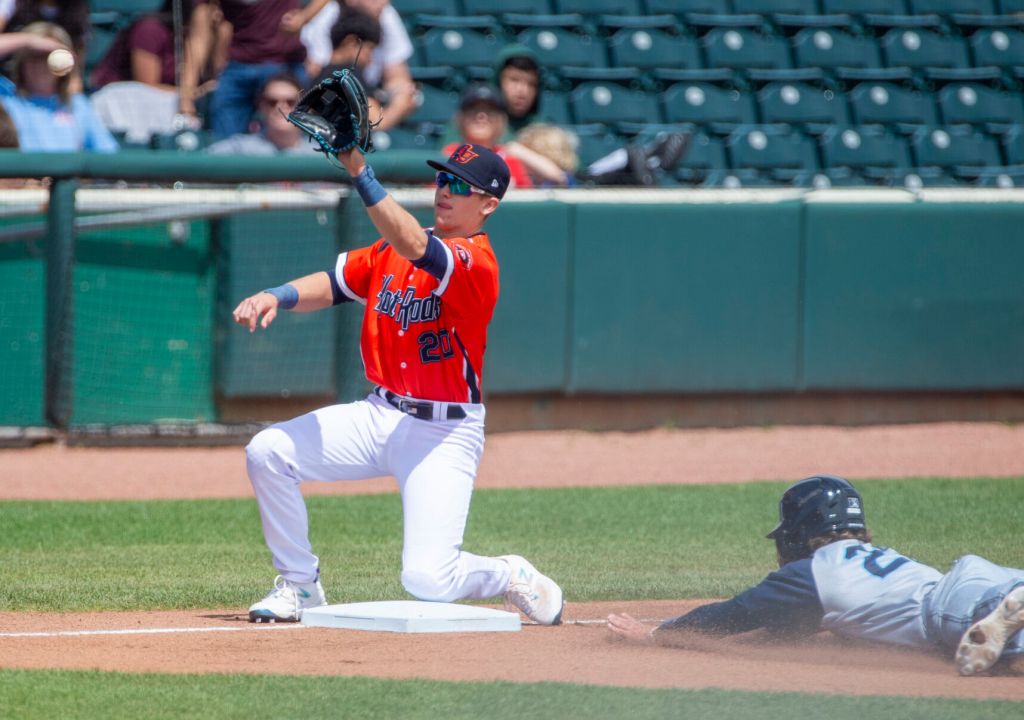 - Brooklyn Cyclones outfielder Nick Morabito (22) slides safely into third base ahead of the ball with Bowling Green Hot Rods infielder Brayden Taylor (20) on the bag at the Bowling Green Ballpark in Bowling Green, Ky., on Wednesday, May 15, 2024. The Hot Rods win the series opener, 14-5. (Daily News photo by Joe Imel/joe.imel@bgdailynews.com)