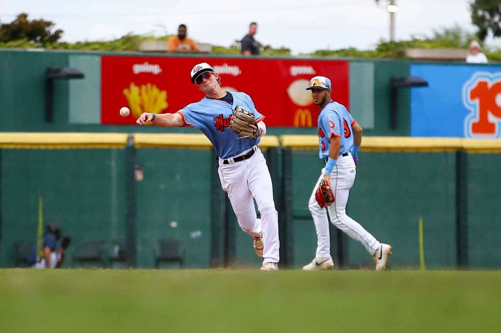 - Bowling Green Hot Rods infielder Mac Horvath (19) makes a throw during the Hot Rods’ 6-1 loss to Greenville on Sunday, Sept. 1, 2024 at Bowling Green Park in Bowling Green, Ky. (Photo by Caleb Lowndes/caleb.lowndes@bgdailynews.com)